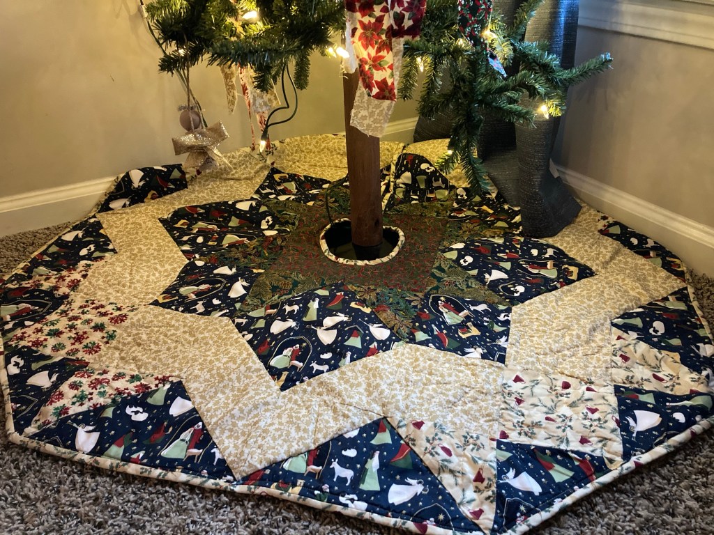 I find this season to have so many fun projects that need to be done to decorate my apartment. This is my first Christmas tree on my own, so naturally, I had to make a tree skirt. I found this amazing nativity fabric at a local quilt shop, and I designed the tree skirt around this fabric.