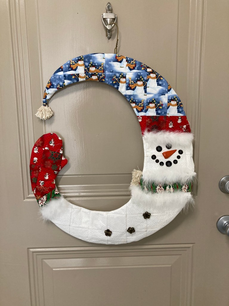 This was a Happy Hollow Design, and all the buttons came with the pattern. The technique is exactly like the pumkin door decoration from A Time for Everything. I used a fusible quick grid which made this fun project quick and enjoyable!