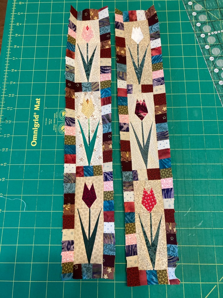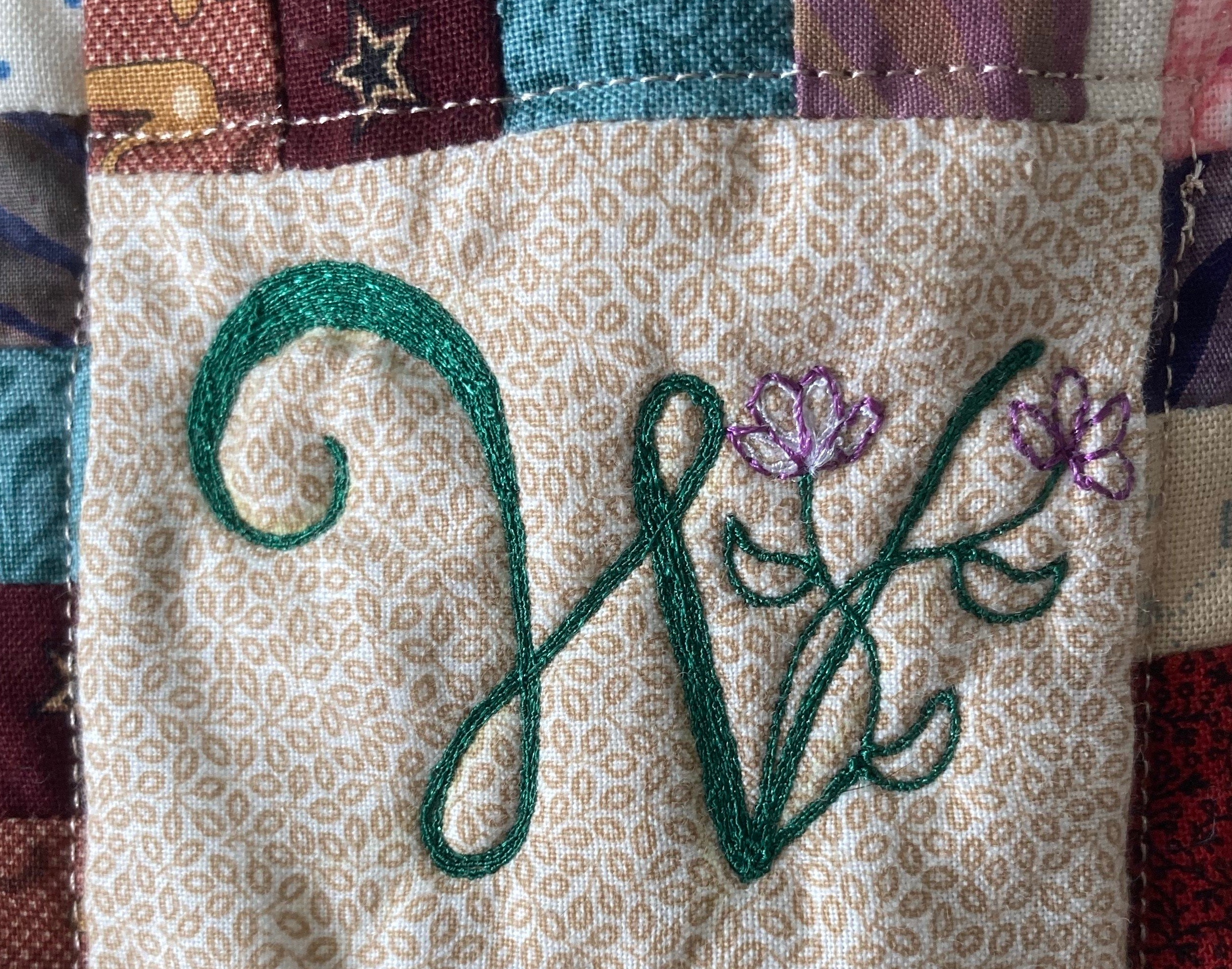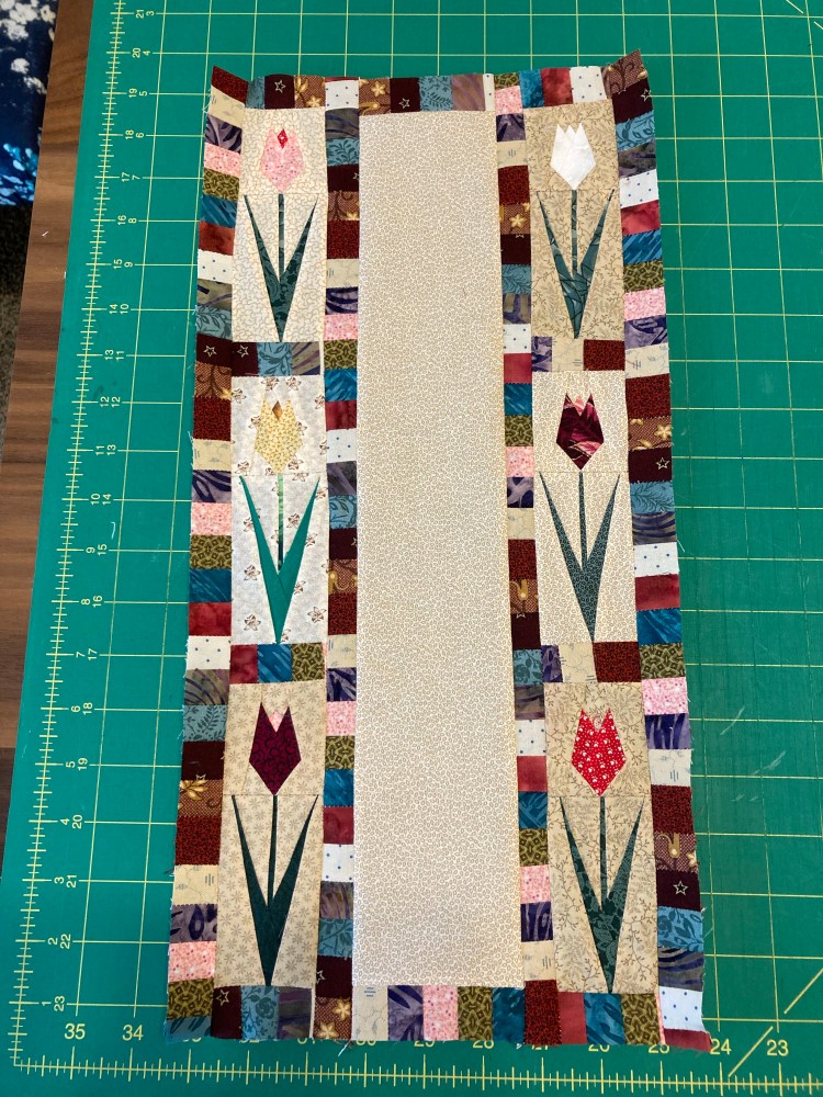 The flowers are another one of my Gramma’s UFOs. They were meant to made into key chain decorations; however, I decided to repurpose them for my own use. I utilized scrap fabric that were all conveniently about the same width to create the colorful border.