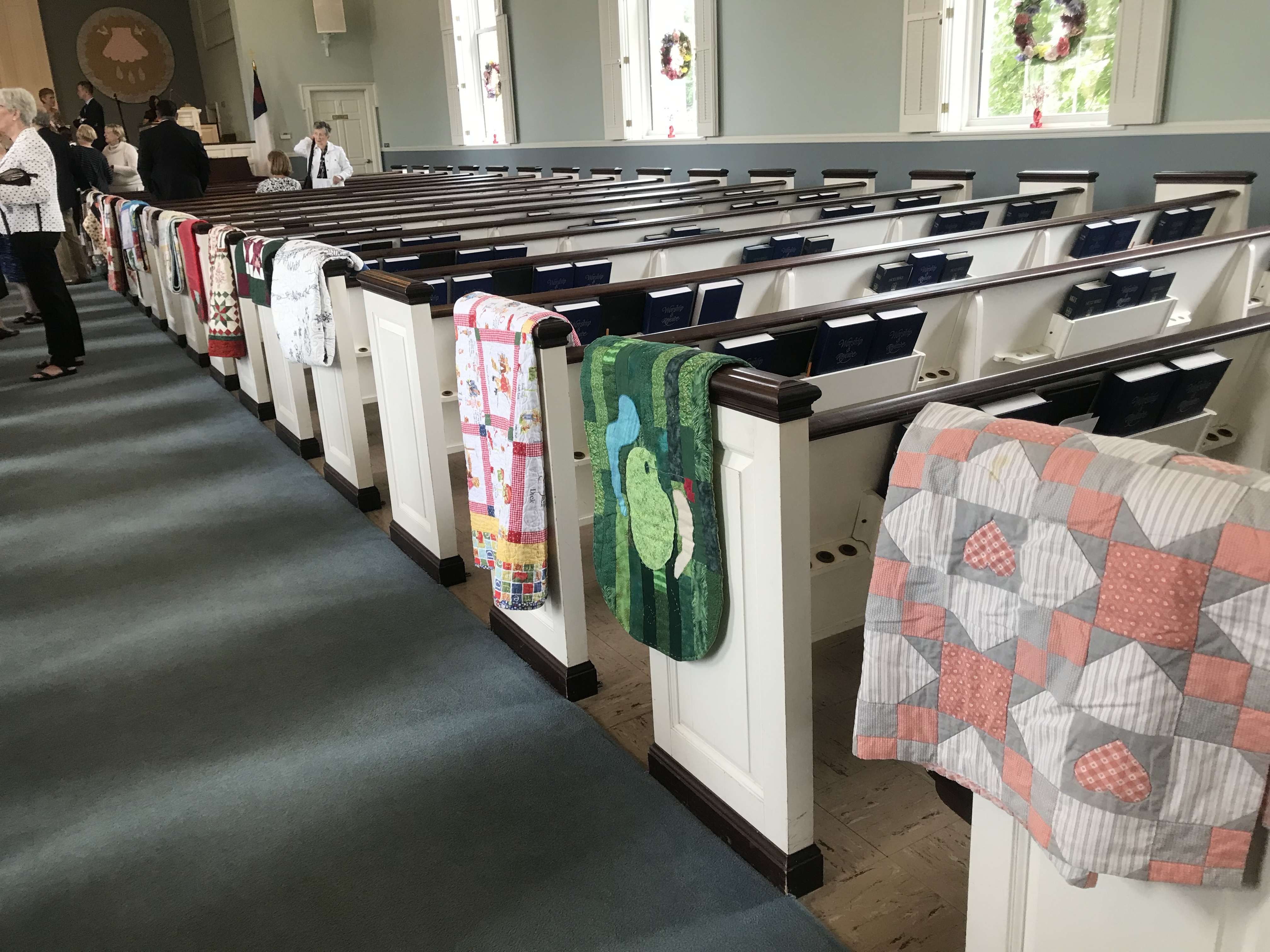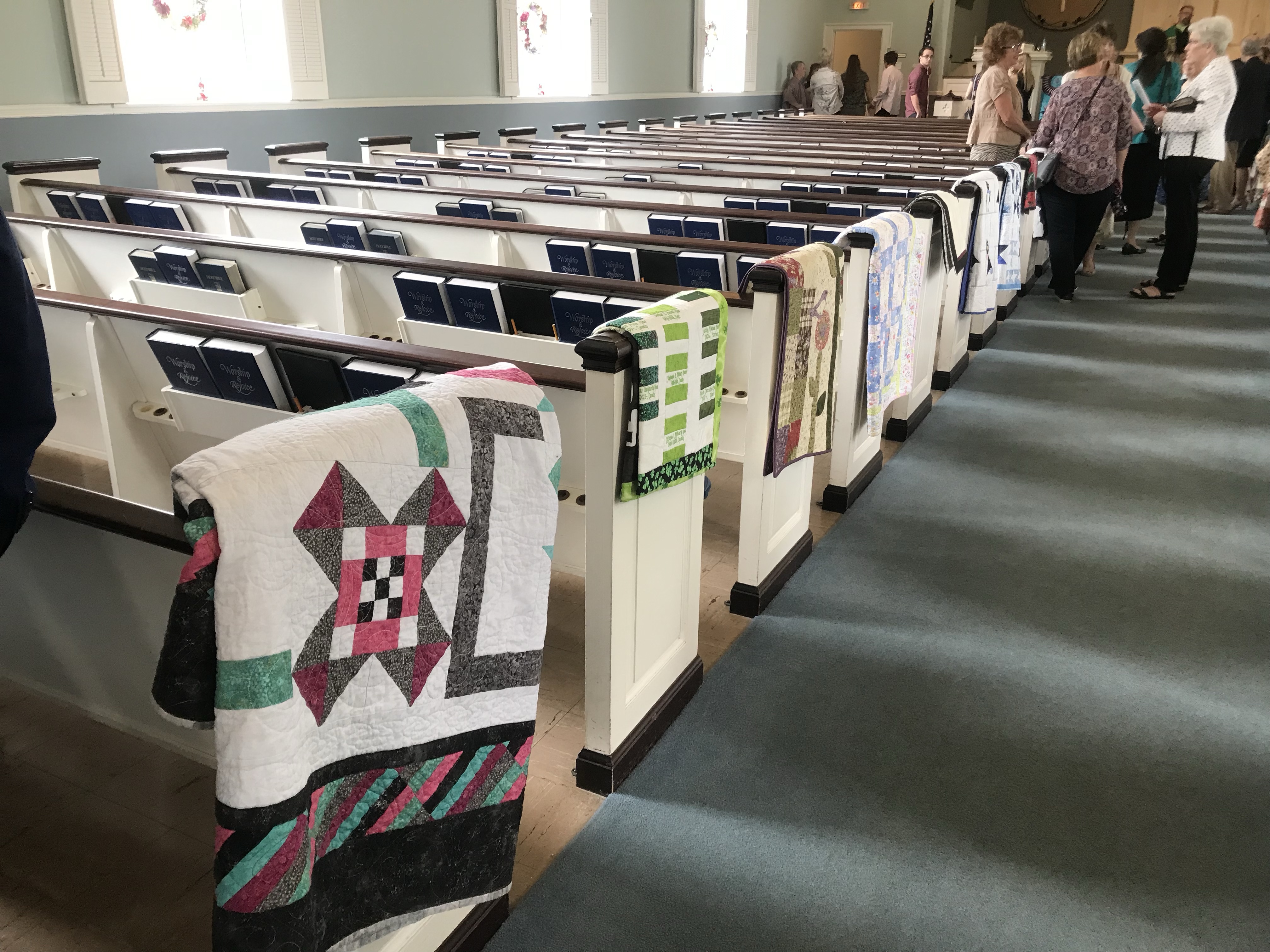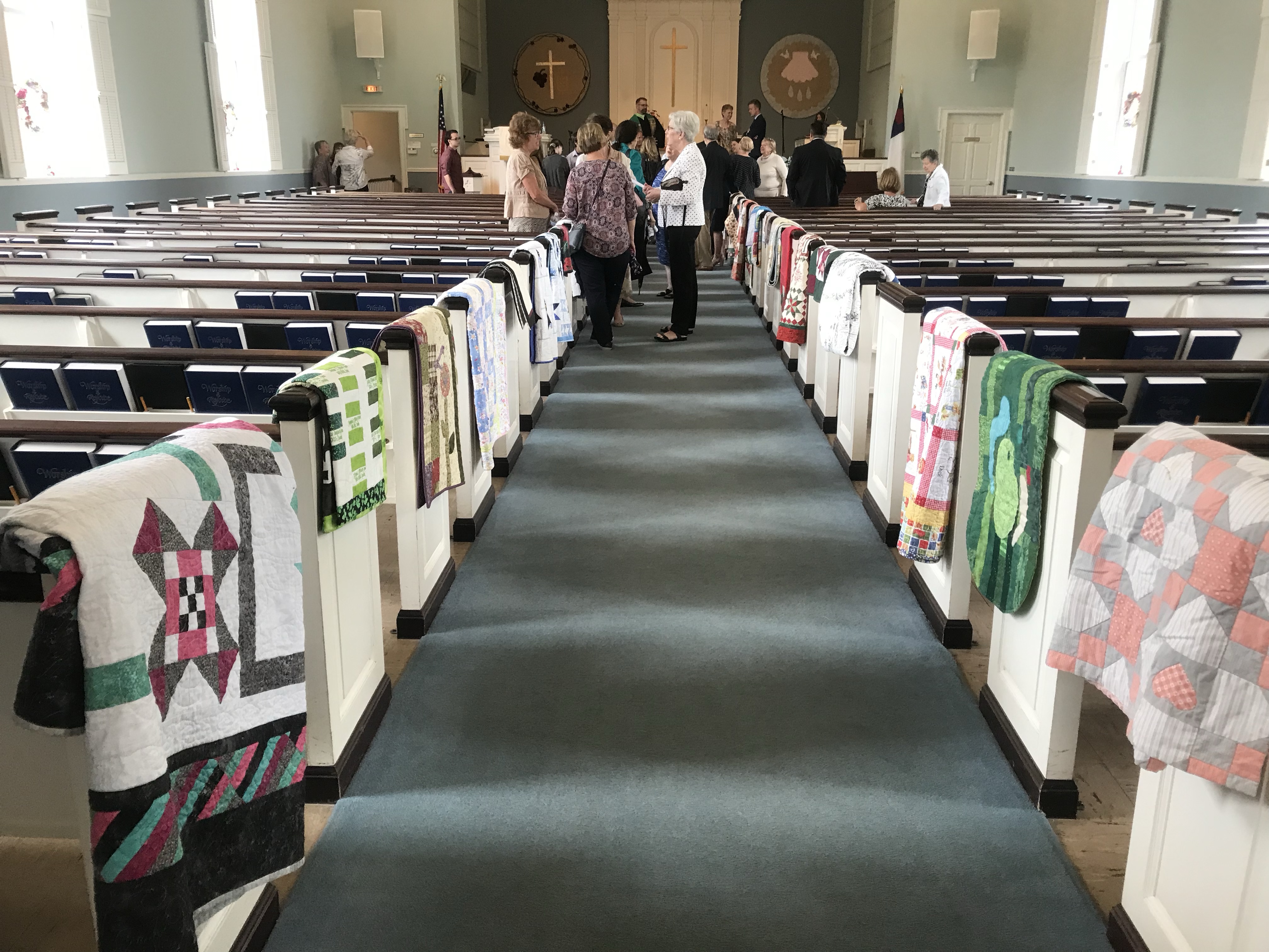 Every quilt you see on the pews of the picture above were touched by Gramma. I could write a lot about what we could learn from her life, but these quilts sum it up for me in one word: love. If you are lucky enough to know or be a quilter (which most of you are since this is a quilting blog, but if not, I’m so glad you enjoy reading my blog posts anyway!), then you know how much time and energy is sewn into each quilt. The amazing part is, these quilts pictured are only a fraction of the things my Gramma had sewn. Most have been given away to other people!