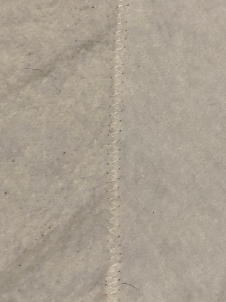 I wanted to impart a simple trick I learned. To the left is a picture of two batting pieces sewn together. If you are like me, you have a lot of extra batting pieces laying around. Simple solution to getting the right size you need is to zig zag stitch between the two batting pieces with a slight overlap. This allows you to use up scraps more efficiently even for slightly bigger projects! I would recommend trying to not overlay seams on top of the zig zag to avoid potential bulking that makes quilting more difficult.